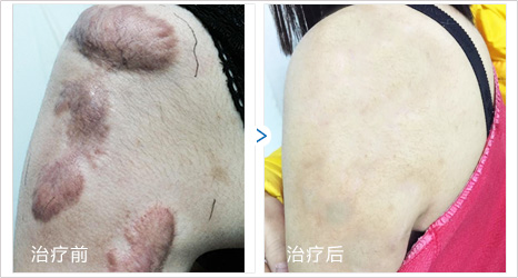 胳膊上的胎记太难看,手术后留下一道疤痕,没想到随着年龄的增长,疤痕也越来越大,比胎记还难看,后悔死了!到医院检查才知道是增生性疤痕,不治疗会越长越大,在东莞莞南用“纳米微晶疤痕修复体系”治疗两个疗程后,疤痕就消失了,现在已基本恢复正常肤色。