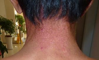 神经性皮炎的症状特点:多发生在颈后部或其两侧、肘窝、国窝、前臂、大腿、小腿及腰骶部等。常成片出现,呈三角形或多角形的平顶丘疹,皮肤增厚,皮脊突起,皮沟加深,形似苔藓。常呈淡红或淡褐色。剧烈搔痒是其主要的症状。