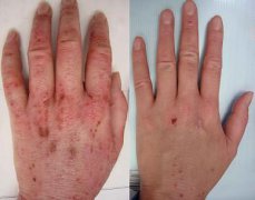 王蓉(化名)手上患湿疹已经七八年,再发作用外用药膏涂抹,不但没有减轻病情反而越加重,患部皮肤结痂、溃烂,邻居介绍她来东莞莞南皮肤病专科就诊。皮肤科的黄兴文主任为她采用"中西医生物脱敏渗透疗法",具有清热利湿凉血的功效,经5天治疗,皮肤色素沉着消失了,皮肤光滑没留一点痕迹,随访至今未见再发作。