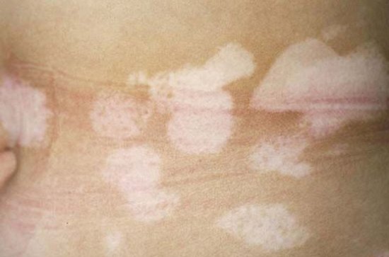 症状:分散在多发性白斑,往往对称分布发于人体的肢端,如面部、手、足、指趾.
