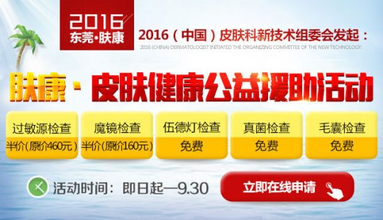 2016中国皮肤科新技术新进展大会暨北上广皮肤科主任论坛在我省成功举办,东莞莞南作为广州市代表出席进行学术交流,出席大会的原卫生部副部长孙隆椿为莞南题词勉励,其中,东莞莞南提报的中医特色诊疗、慢性疑难皮肤病治疗进展、我省高发病防治经验、季节性多发皮肤病治疗进展等多个课题受到大会组委会的一致认可,为庆祝大会的胜利召开,推进2016年皮肤科新技术临床应用,东莞莞南特开展2016皮肤健康公益援助活动,对全国各地皮肤病患者进行公益救助