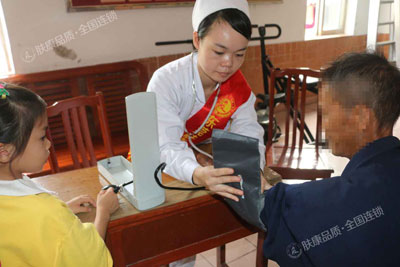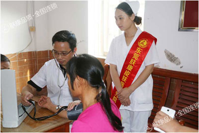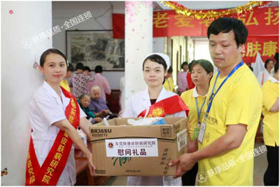南城莞南皮肤病研究院医疗小分队的医务人员现场为老人义诊,他们的工作台被围了个结结实实,护士邓和珍和皮肤科医生刘英主任一边为老人量血压一边与亲切交谈,告诉他们平时保健方面的知识,在健康服务间隙,莞南的白衣天使们又将为老人准备好的苹果、牛奶、洗衣粉、纸巾等慰问礼品分发给现场老人,老人竖起大拇指表示,对像这样又送慰问品又解决他们实际问题的活动连声说好。