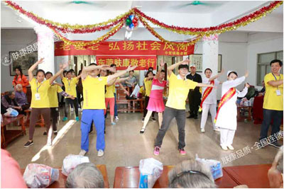 本次慰问活动志愿者服务队的其他部分分队也派出队员和选送文艺节目参加,慰问活动在志愿者服务队蓝子队选送的扇子舞中开幕,湛翠队和搓滘队分别送出了“中国功夫、二十四式太极和暖暖的幸福”节目,作为本次活动的倡导者启程队,更是献出了“急流勇退、共缘中国梦、跳到北京”等节目,慰问队伍的热情瞬间点燃了敬老院的老人们,有的坐在轮椅上即兴献歌,也有的迈着龙钟步伐与志愿者共舞。参加节目有小到几岁懵懂的小朋友,大到耄耋之年的老人,活动热情高涨,大家无不为本次慰问活动叫好,中堂敬老院副院长对活动参与人员再三表示感谢,认为本次活动为老人们奉上了一场开心、健康饕餮盛宴。